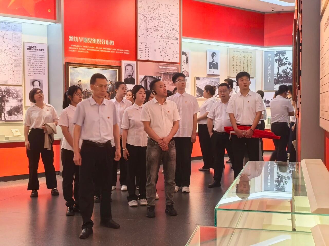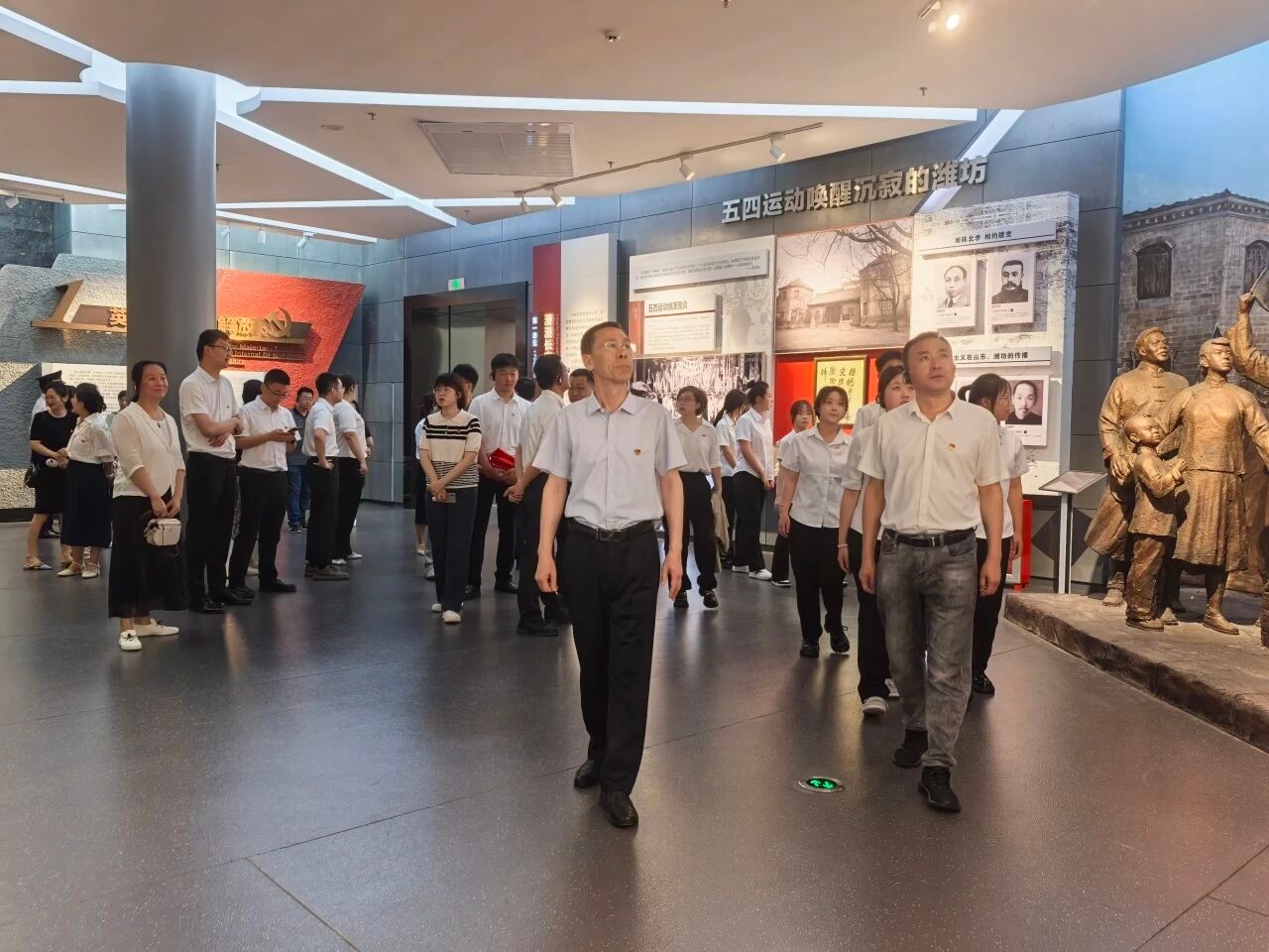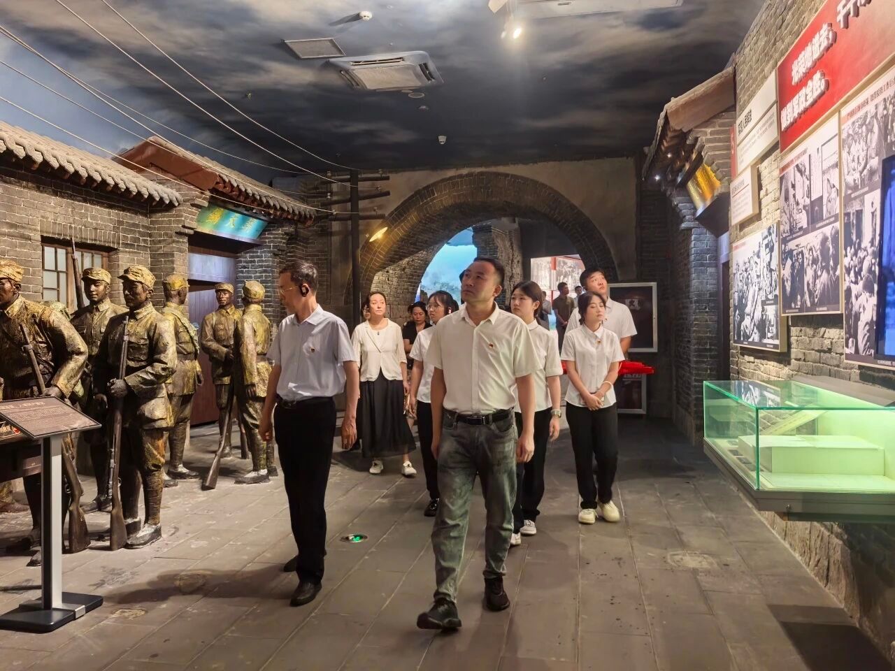 在展馆大厅,全体党员庄严列队,面向鲜红的党旗,重温入党誓词,铿锵有力的誓言,表达了全体党员对党的无限忠诚和坚定信念,激励大家牢记初心使命,永葆政治本色。在工作人员的带领下,全体党员依次参观了五大主题展区。馆内一段段详实的文字记录、一幅幅珍贵的历史图片、一件件厚重的实物展品,生动再现了中国共产党筚路蓝缕、砥砺奋进的辉煌历程。大家认真聆听讲解,不时驻足交流,深切感悟党的伟大精神和革命先辈的崇高品格,进一步加深了对党的历史的理解和认同。
