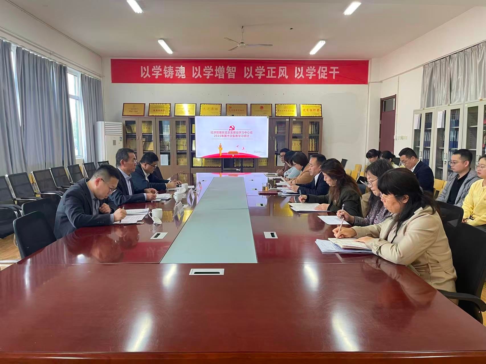 10月31日下午,学校党委副书记、校长刘福玉到经济管理系旁听指导理论学习中心组(扩大)学习和党政联席会议并作点评讲话。经济管理系党政班子成员、师生党支部委员参加会议,议题有关人员列席会议。