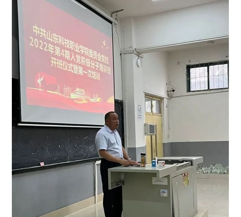 2022年5月31日晚6时,经济管理系举行中共山东科技职业学院委员会党校2022年第4期入党积极分子培训班开班仪式暨第一次培训。本次开班仪式暨第一次培训课主题是《学习遵守党章,在复兴伟业中书写青春荣光》,由经济管理系陈守学同志主讲。