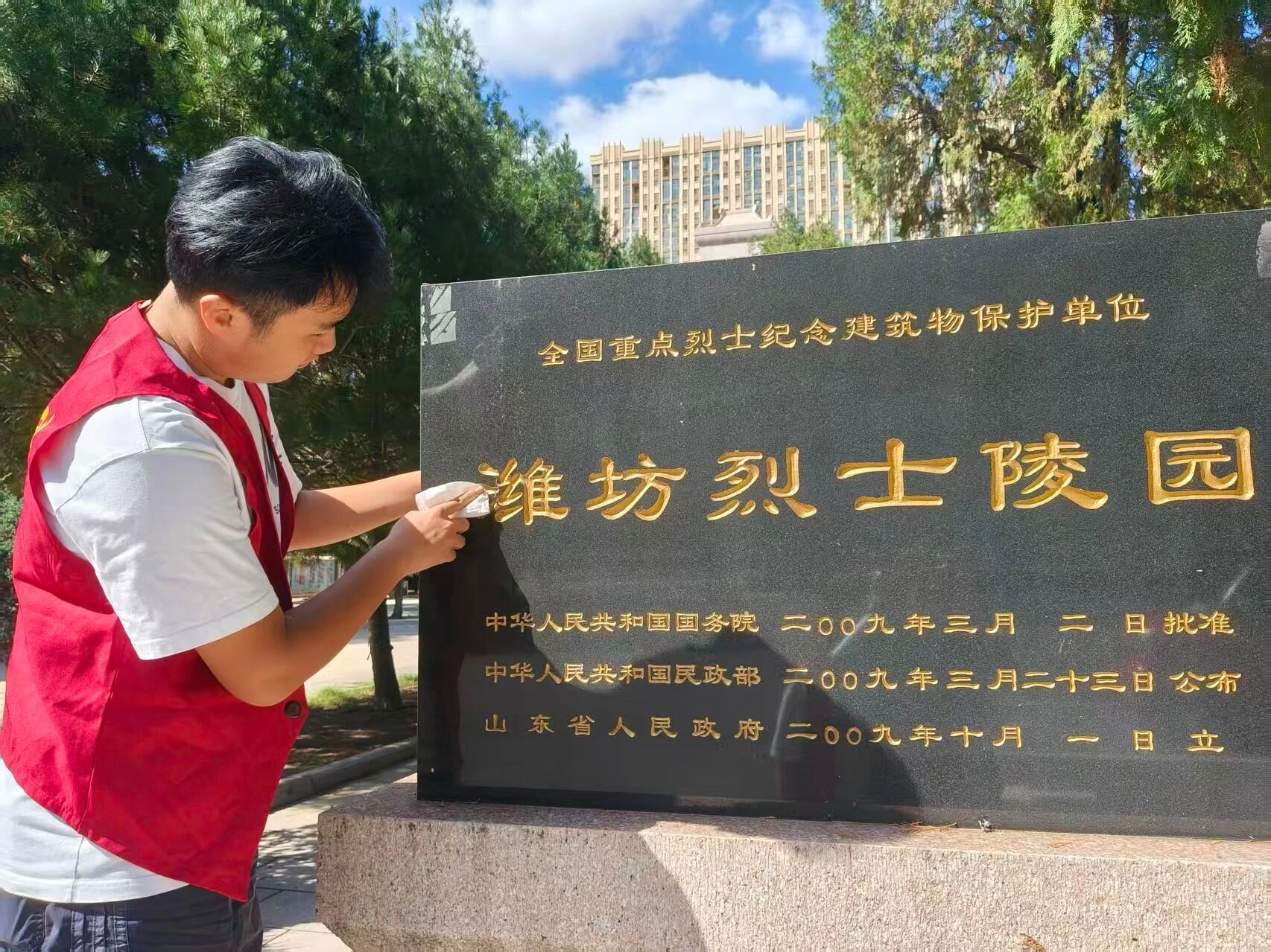 在“九一八”事变纪念日来临之际,9月17日,经济管理系知行精为志愿服务队30名志愿者前往潍坊市烈士陵园,开展了“缅怀革命先烈,赓续红色血脉”主题实践活动。