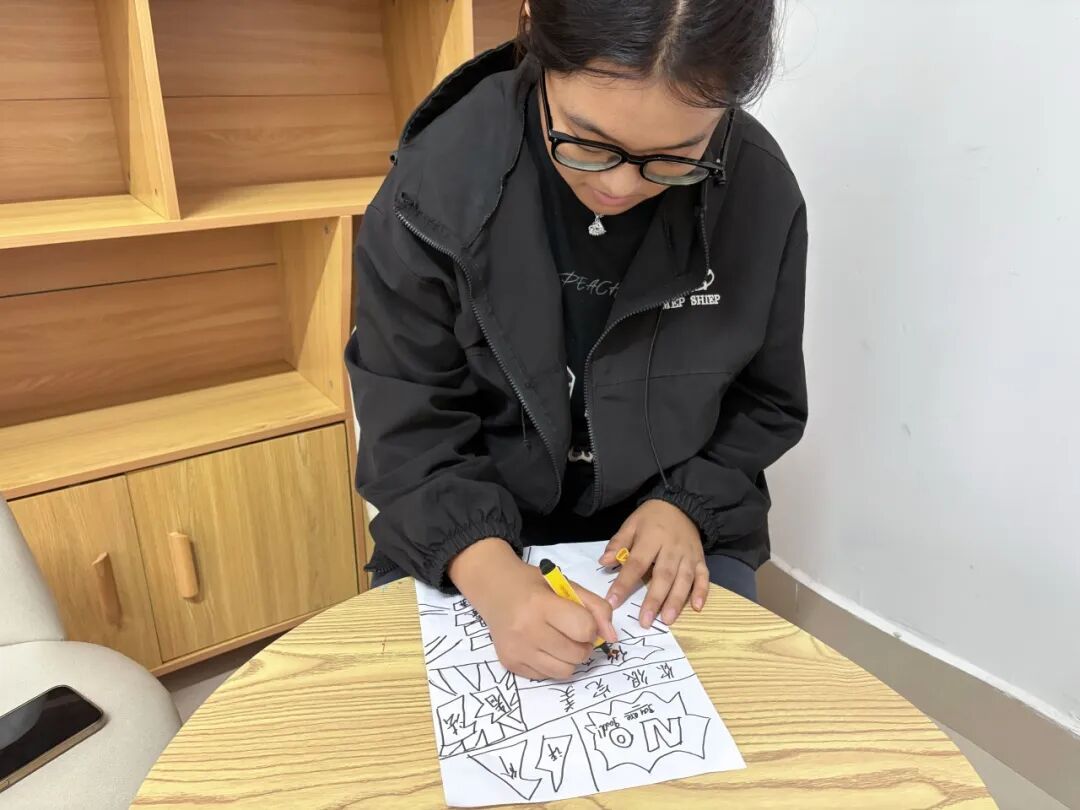 漫画作为一种非语言载体,为同学们提供了深度自我对话的独特途径,助力其在创作中实现从自我觉察到心理成长的跨越。在此背景下,活动以“自我认知与优势挖掘”为主线,组织学生通过漫画创作开展对内心世界的探索。同学们以画笔为媒介,在勾勒自我形象的过程中,既表达了真实的情感与困惑,也进一步识别并强化了自身优势,实现了从自我觉察到心理成长的跨越。经公开评审,优秀作品已在5号楼“一站式”学生社区展出。