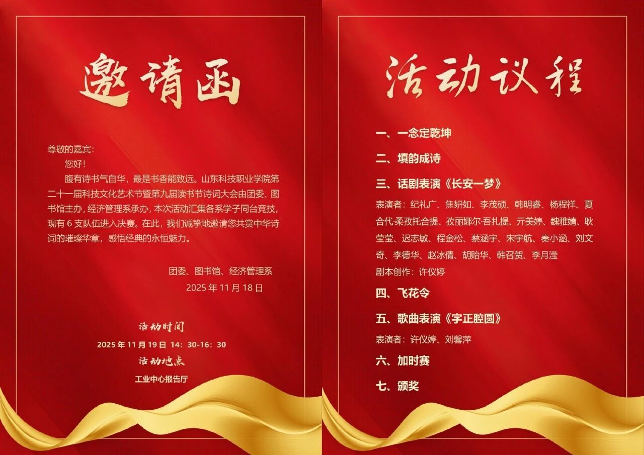 “腹有诗书气自华,最是书香能致远。”第二十一届科技文化艺术节暨第九届读书节诗词大会即将拉开帷幕!我们诚挚邀请您莅临现场。