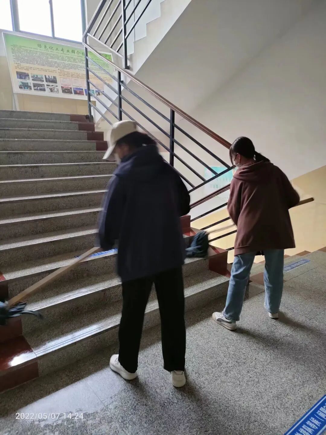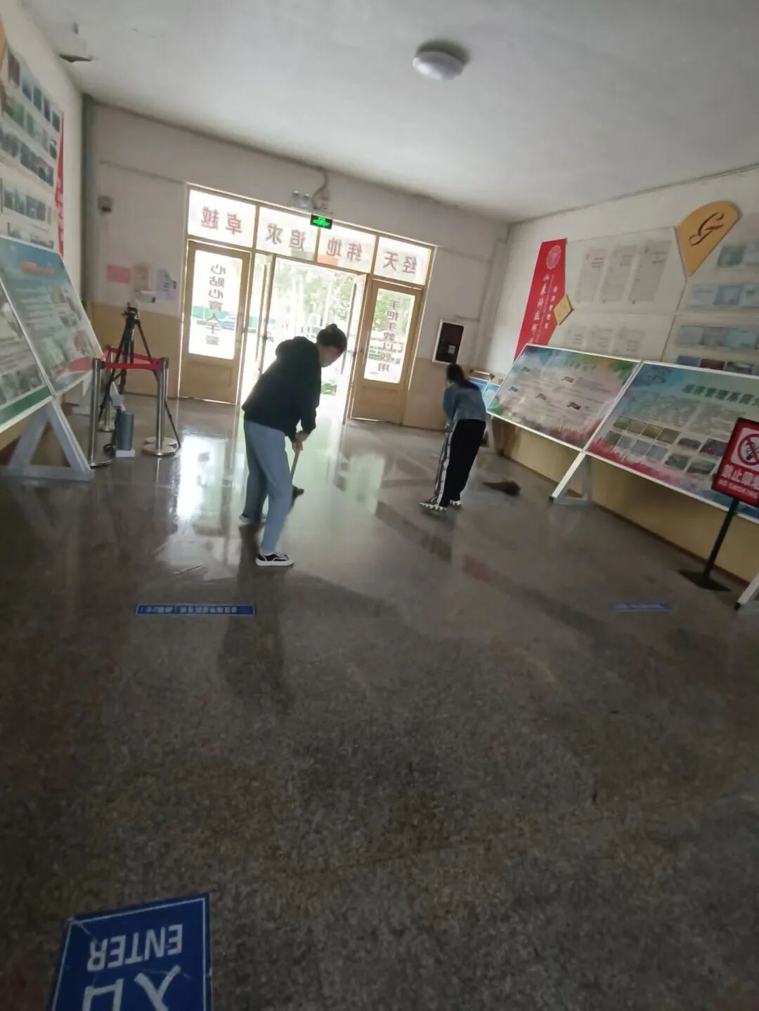 活动当天,志愿者们迎着夏日暖风,结伴而行,在问辩楼下集合。然后按七人一组进行分组,按组领取任务后,开始有条理的进行着。志愿者们按教室顺序开始一一打扫,井然有序的进行开窗通风、打扫尘土、拖地、整理桌椅等一条龙式服务,志愿者们相互配合默契,高效率高质量打扫教室。活动结束后,志愿者们将卫生工具清洗干净并摆放整齐。这次活动圆满完成,在最后志愿者们进行了拍照留念,记录了这个有意义的时刻。