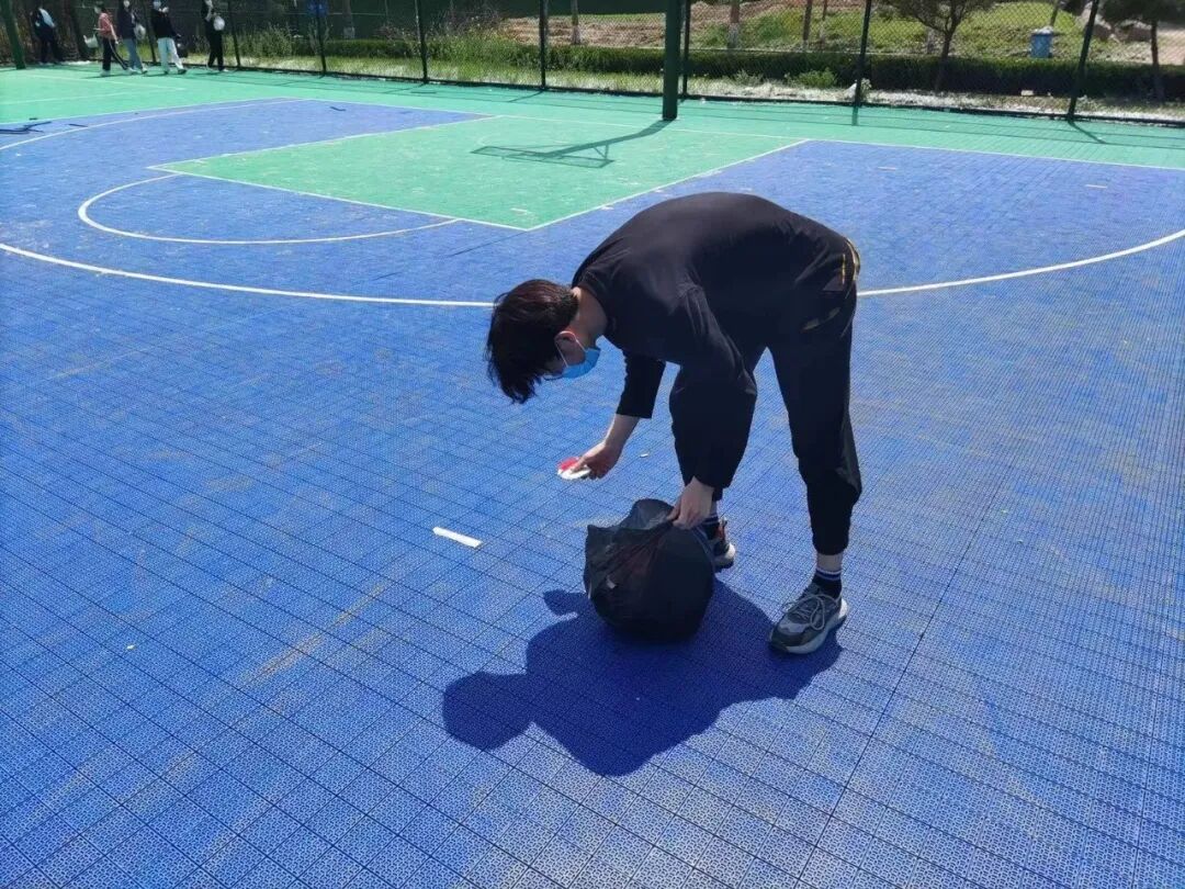 活动开展前,所有参与活动的志愿者在篮球场前集合完毕。活动中,志愿者们分成5小组,拿着笤帚、带着手套分别清扫和捡拾着球场内外的烟头、瓶盖、碎纸屑等垃圾。经过两个小时的清扫,篮球场的烟头以及垃圾被志愿者们一扫而光,整整装了十余袋,球场变得焕然一新。
