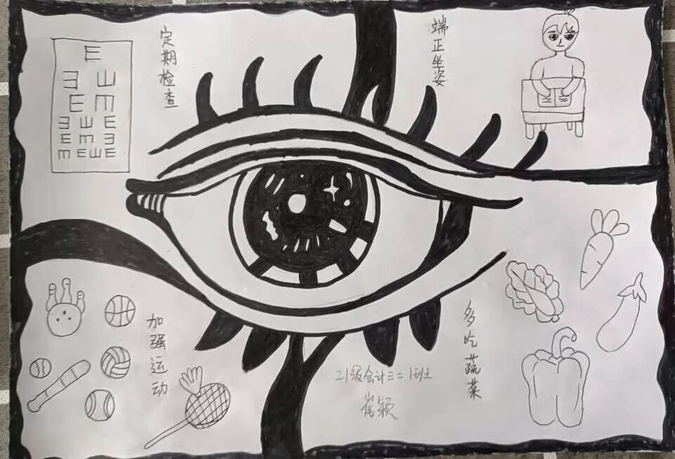 为了扎实做好近视防控工作,宣传爱眼护眼的好习惯,增强同学们保护眼睛的意识,懂得保护眼睛的重要性。经济管理系团总支于2022年3月15日—2022年3月23日开展“爱护眼睛,拥抱光明”主题爱眼绘画活动。