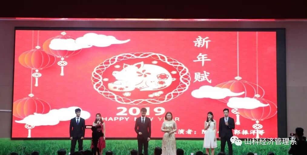 晚会伊始,陈守学书记转达了刘桂玉院长和丁文利副院长的新年贺词,并代表经济管理系师生向应邀出席的嘉宾表示欢迎,对同学们表达新年祝福和希望!随后,晚会现场播放了经济管理系教师代表及学生代表的新年祝福视频剪辑。