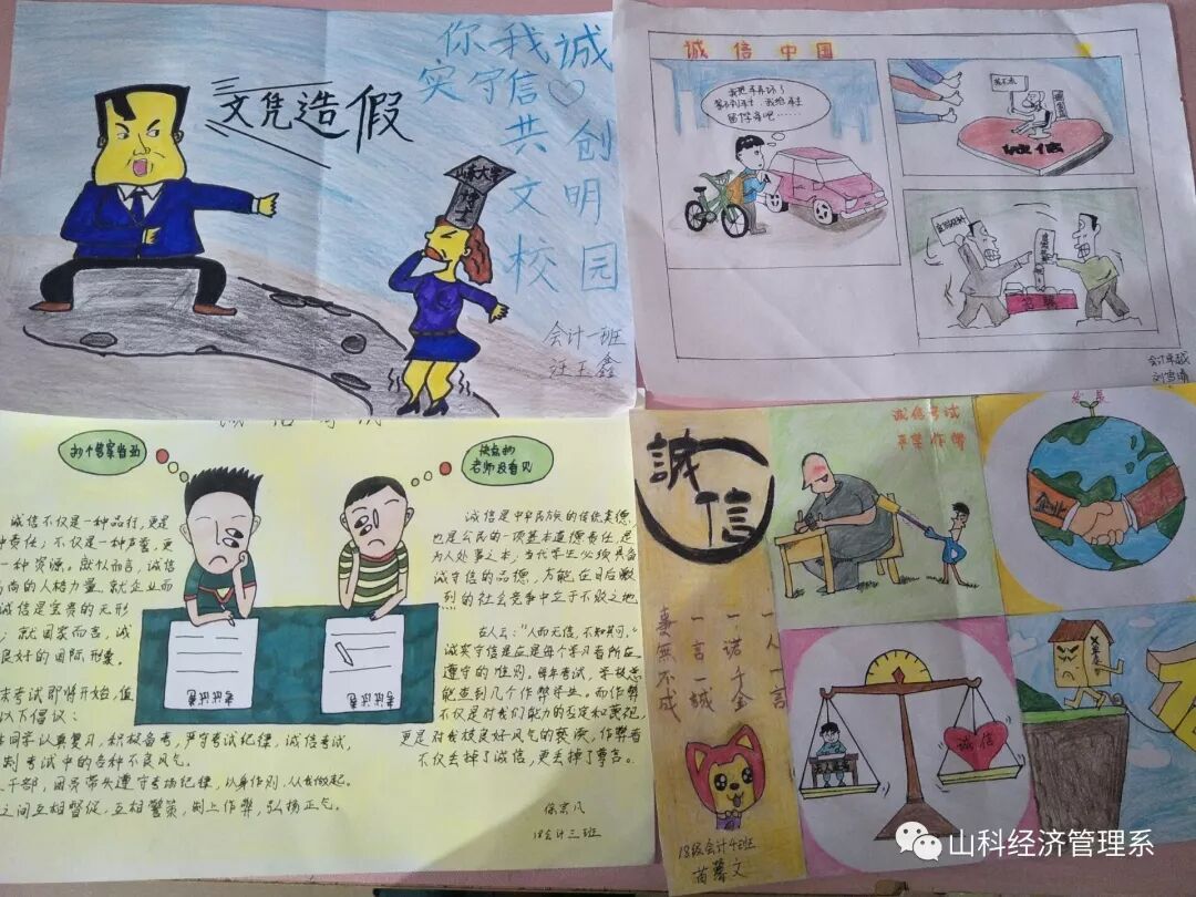 2018年12月13日,经济管理系三热诚信部举办以“你我诚实守信,校园和谐文明”为主题的漫画大赛活动。是为了我市迎接全国文明城市测评,确保学院内外环境优美、秩序优良、服务优质、设施完好、公益氛围浓厚、师生行为规范,消除各种不文明现象,在学校营造出人人讲诚信的良好校园氛围,加强同学们在学习生活中的诚信观念