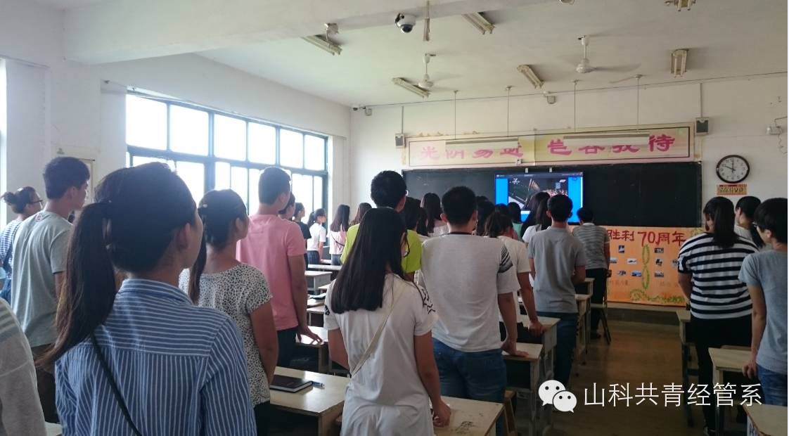 为了纪念中国抗日战争70周年纪念日,学院响应组织号召,我系积极组织配合,增强学生的集体荣誉感和爱国意识。9.3日上午我系学生科组织同学们分别在宿舍和教室观看了抗战胜利70周年阅兵的全过程,徐艳老师也全程参与了阅兵仪式的观看。过程中,我们全体起立奏唱跟随阅兵仪式的国歌,让我们感受到了高度的历史使命感和责任感。
