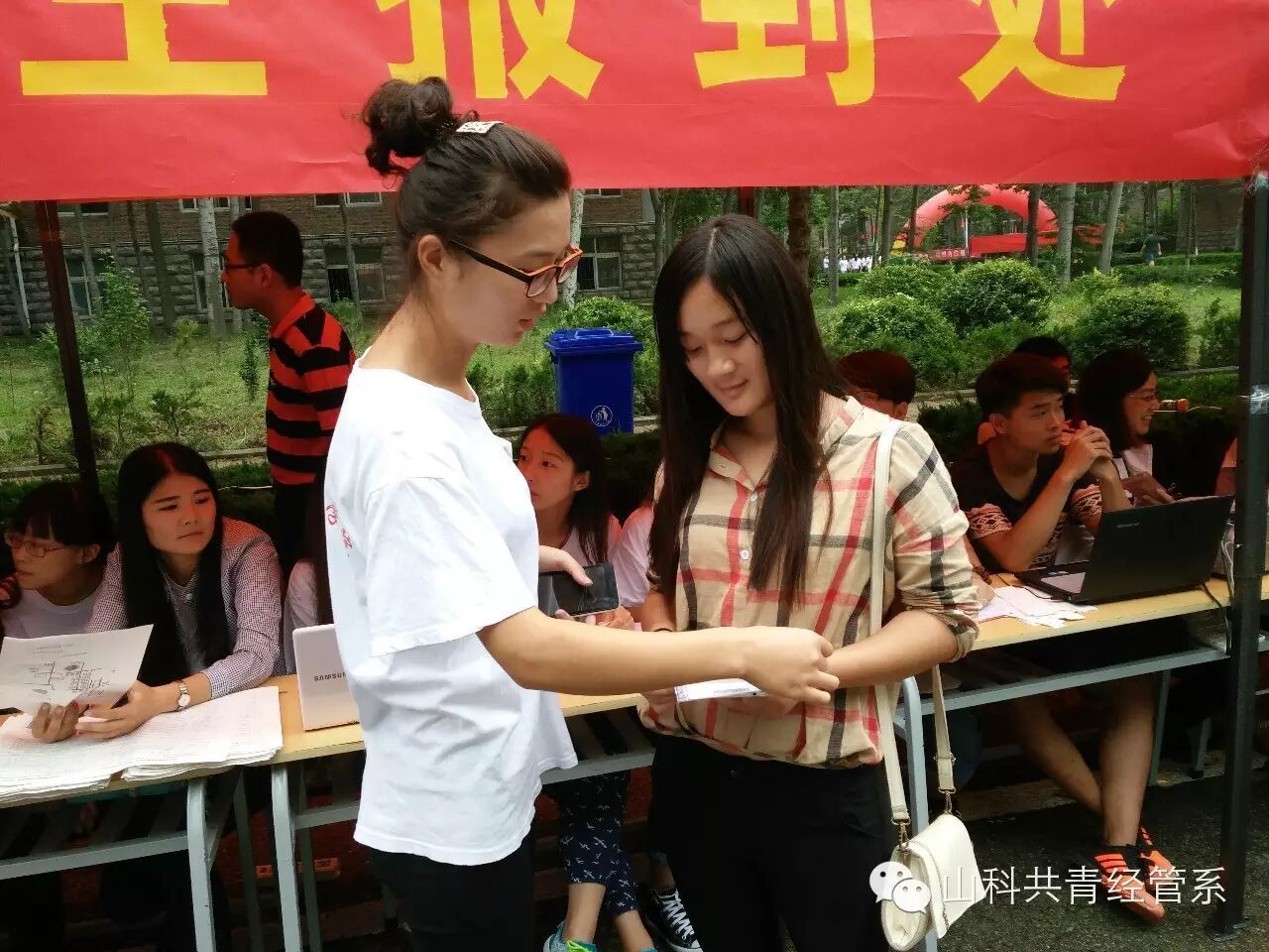 报到处老师学生忙碌的场景
