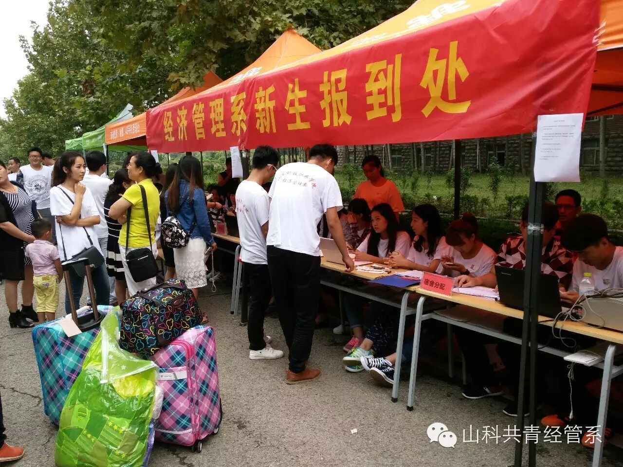 经管系报道处,一条条醒目的迎新横幅、一面面迎风飘扬的彩旗,一块块活泼生动的迎新展板、一张张洋溢着青春自信的笑脸,构成了迎新工作中一道道亮丽的风景线。在迎新现场,工作人员热情地为新生办理入学登记等手续,志愿者也穿梭在人群中,主动帮新生提行李,引领新生完成报到的手续,带领他们找到各自的寝室。师生们以热情周到的服务、认真细致的引导,为前来报到的新生创造出一份家的温馨和浓浓地亲情,让远离家乡的学子们感受到山东科技职业学院这个大家庭的温暖。
