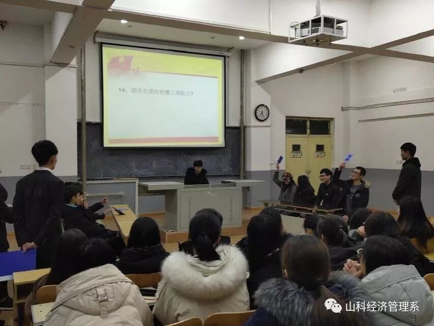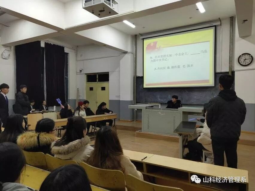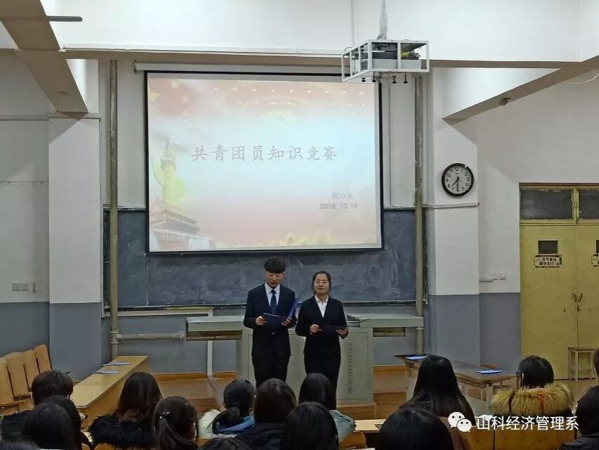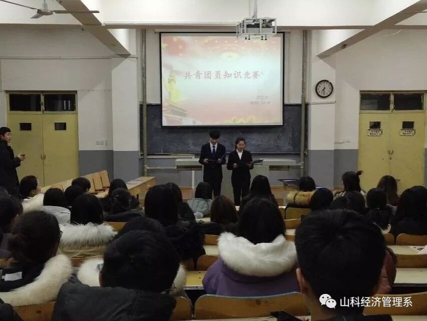 为进一步加强青少年对共青团的了解,深入贯彻党的十九大精神,践行习近平新时代中国特色社会主义思想,响应我院号召,增强我院广大团员青年对祖国及中国共产党的热爱之情,全面了解中国共产党和中国共产主义青年团的光辉历史,经济管理系团总支于2018年12月19日在问辩楼214开展了以“学共青知识,践青春誓言”为主题的“共青团知识竞赛”活动。