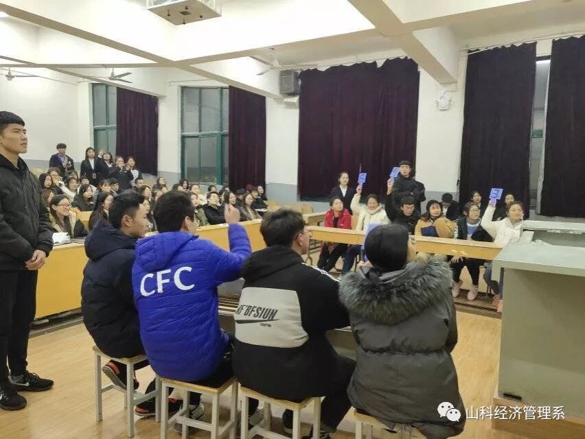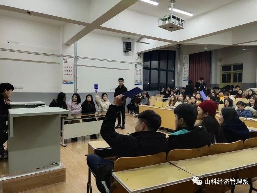 本次活动号召全系同学参与其中,由各班选拔两名优秀选手代表进行比赛,赛前经过抽签分组使活动的组织进一步完善,同时也确定了选手的对决方式。比赛采用的抢答制度,各组选手在主持人下达开始抢答的口令后举起桌上的号码牌进行抢答,以举牌快慢决定答题对象,答对加一分,答错不予计分。