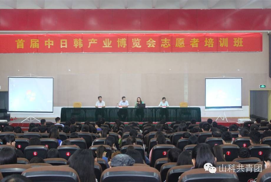 9月12日上午我校工业中心首届中日韩博览会志愿者培训班。
