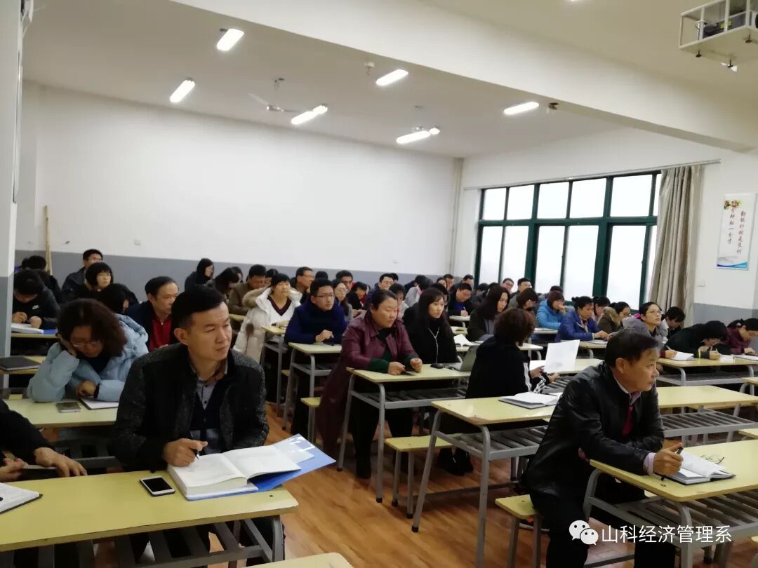 为加强我系师德师风建设,2018年12月3日下午,经济管理系开展了“深刻领会习近平十九大报告精神,全面加强新时代师德师风建设”专题党课活动。本次党课由经济管理系党总支书记陈守学主讲,全系教职工参加。