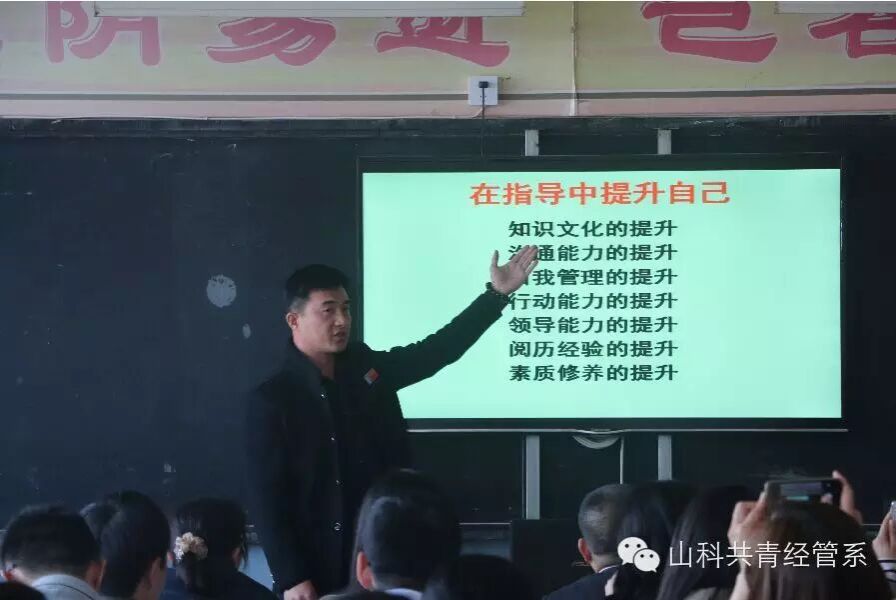 2015年10月28日,我系于2J406召开“职业生涯规划指导”专题讲座,经济管理系领导、学生科老师、各团指导教师、经济管理系学习部成员及15级各团队学习委员参加了此次活动。开始,陈永顺主任跟大家团委学生处(思政部)杨海庆老师对职业生涯规划的设计与指导作了简单介绍。