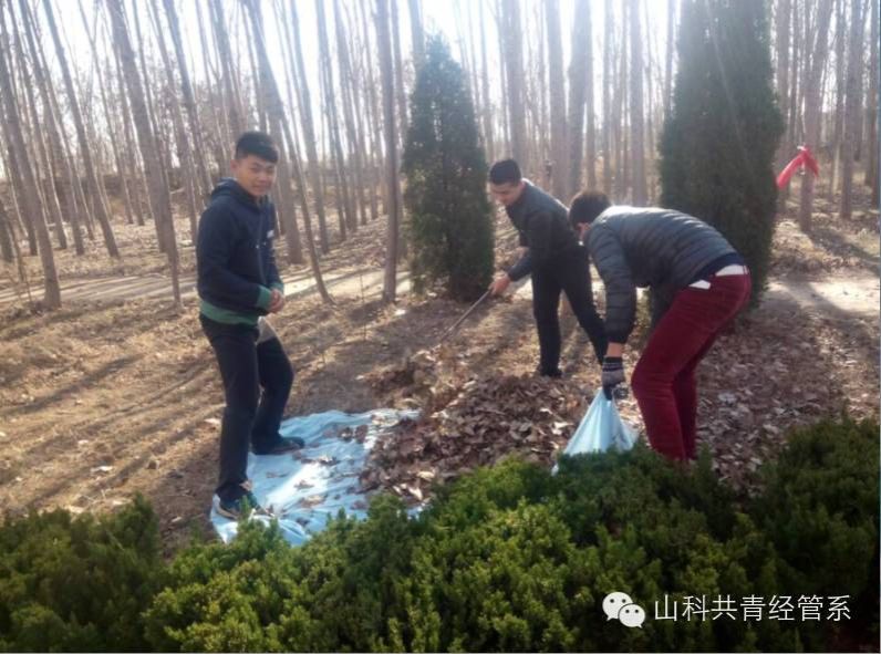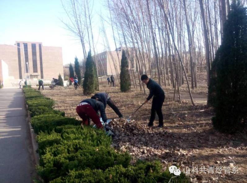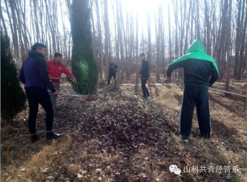 为不断优化公寓周边环境,深度改善公寓卫生状况,彻底清除公寓周边落叶,积极打造和谐文明公寓,努力为广大同学创造一个良好的学习生活住宿环境,2015年12月4日下午,在公寓办楼长郭永刚老师组织带领下,经济管理系宿管委员会30余名同学积极参与,对12号公寓南边小树林落叶进行了一次详细彻底清理。