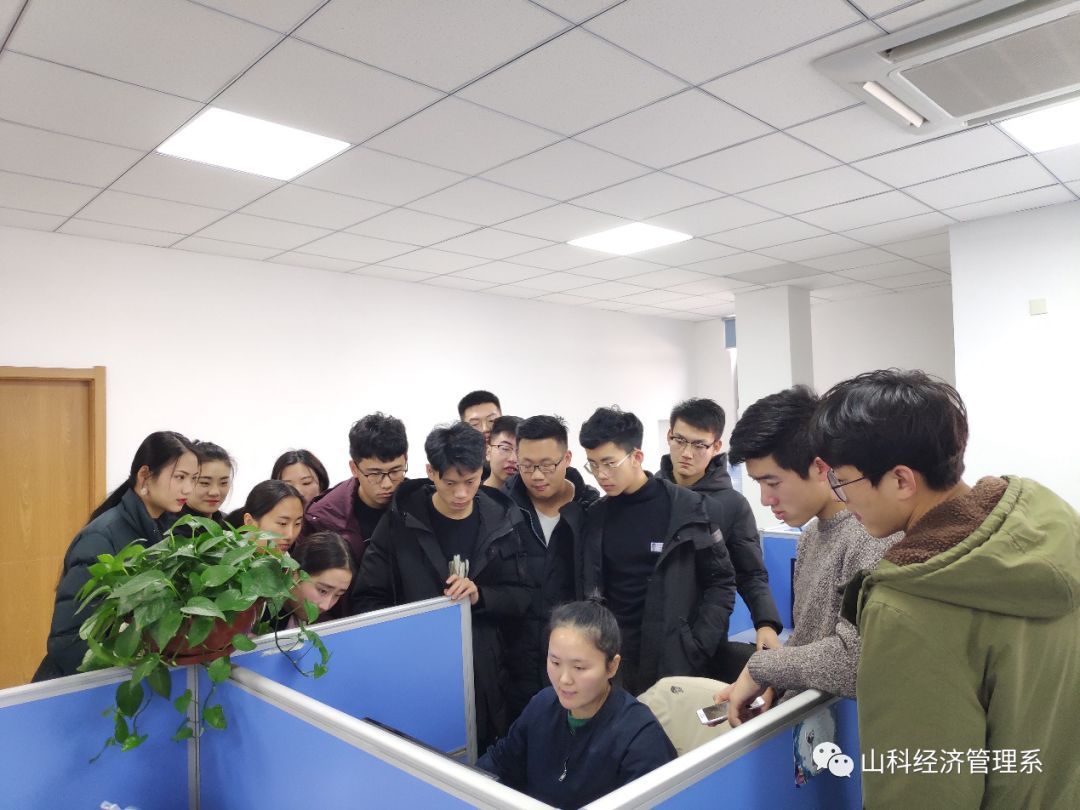 2019年1月3日,经管系郝晓老师、刘彤老师、朱文岩老师带领张磊、孙明超、孔岳等16名同学前往潍坊恩源信息科技有限公司,开展潍坊昌乐居民的政务满意度话务调研活动。活动开始之前,恩源公司的付老师对学生们开展了相关的培训与指导,教授给学生们相关的市场调研知识与电话沟通的技巧。在工作过程中,学生们认真总结经验和教训,得到了培训老师的认可。满意度调查结束后,思源公司的李经理带领我系的师生参观了思源公司,在参观的过程中我们对互联网+、大数据挖掘、云平台等有了更深入的认识,对于教学、科研、实习等方面更多的思考。