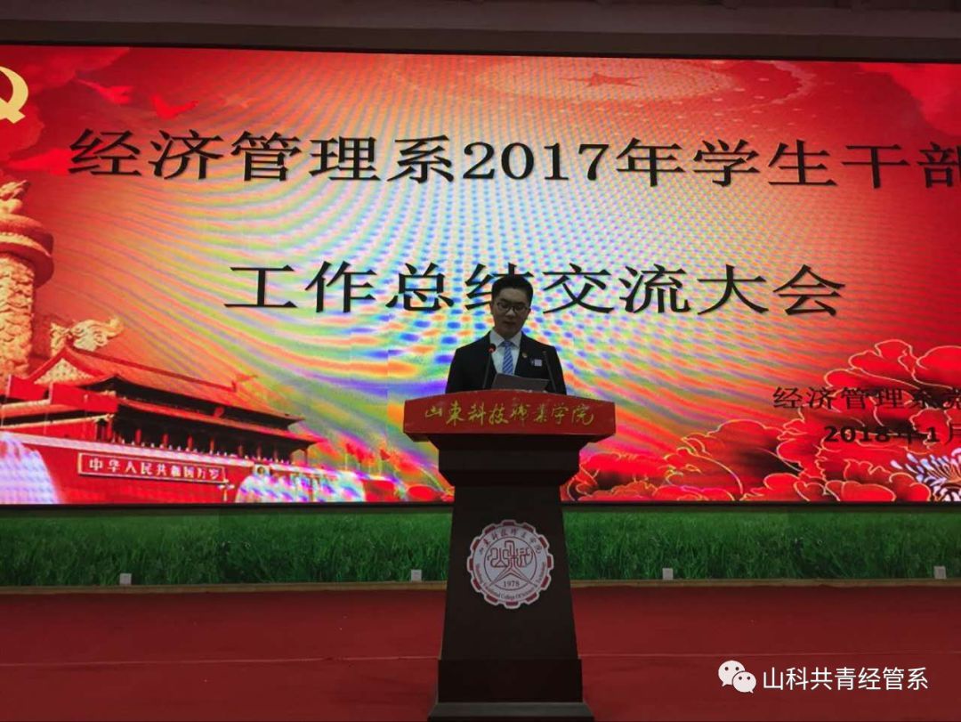 会上,陈守学书记对系部2017年度学生干部工作给予了高度评价,总结了2017年团学工作的重点、成绩和不足,确立了经济管理系2018年团学工作新目标,并对寒假及2018年学生工作新思路和工作计划做了周密部署。