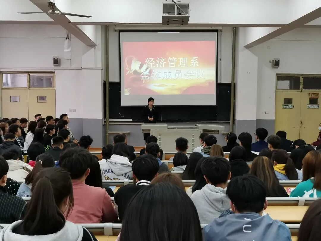 3月10日下午4点,在问辩楼314教室召开学生会全体成员大会,参与本次会议的有经济管理系总支部书记陈守学、副书记李涛、学生科科长张俊超、全体辅导员老师及全体学生会成员。