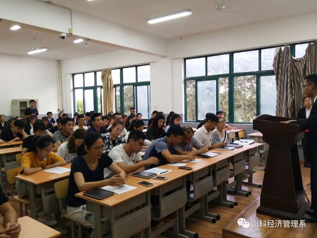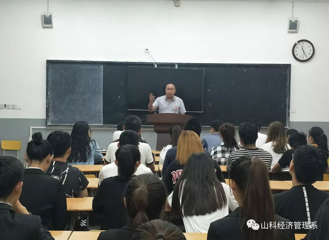 2018年9月6日,经济管理系学生会干部竞选大会在问辩楼309教室举行,经济管理系党总支书记陈守学,学生党支部书记、学生管理科科长李涛,各年级辅导员老师出席大会并担任本次竞选评委,学生会主席团成员及竞选学生会干部的成员参加了本次大会