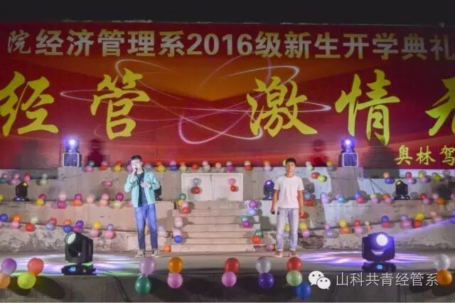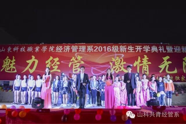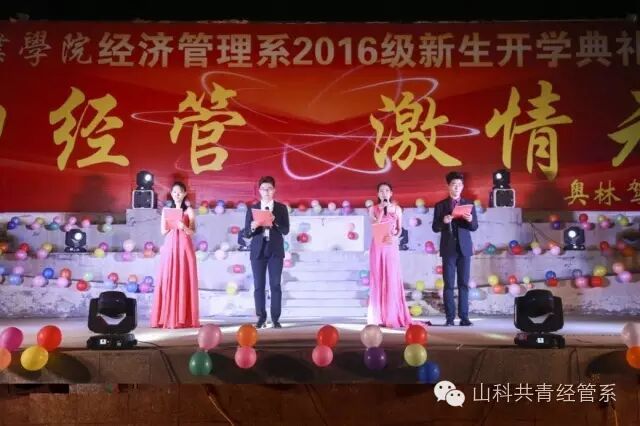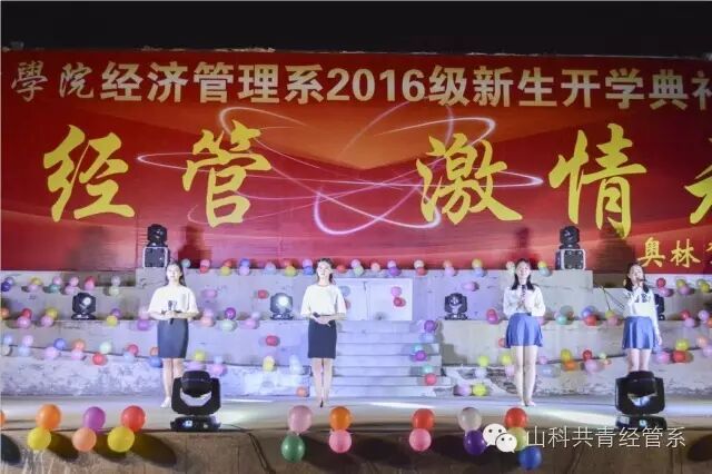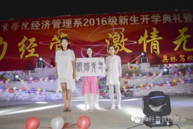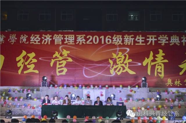 9月29日晚,经济管理系2016开学典礼暨迎新晚会在学院文化广场举行,院长助理丁文利、教学中心主任李兴凯、团委学生处处长谭清国等学院领导参加了活动。典礼由经管系副主任徐永红主持。院长助理丁文利代表学院致辞,他充分肯定了经管系上一学年取得的成绩,并结合经管系专业特点,对全系师生提出了希望和要求,勉励大家在新的学年取得更大的成绩。系主任陈永顺介绍了全系的总体概况,并对新生提出了具体要求。赞助单位奥林驾校校长张学林发表了热情洋溢的致辞,向全系师生表示了良好的祝愿。典礼对上学年的优秀学生进行了表彰,张瑶瑶和张戈同学分别代表新老生发言,典礼最后,973名新生进行了庄严的宣誓仪式。