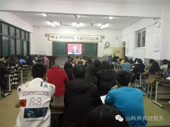 2016年11月13日,经济管理系团总支利用晚自习的时间,在问辩楼11个自习教室组织16级全体团员青年900余人观看了十八届六中全会相关视频。