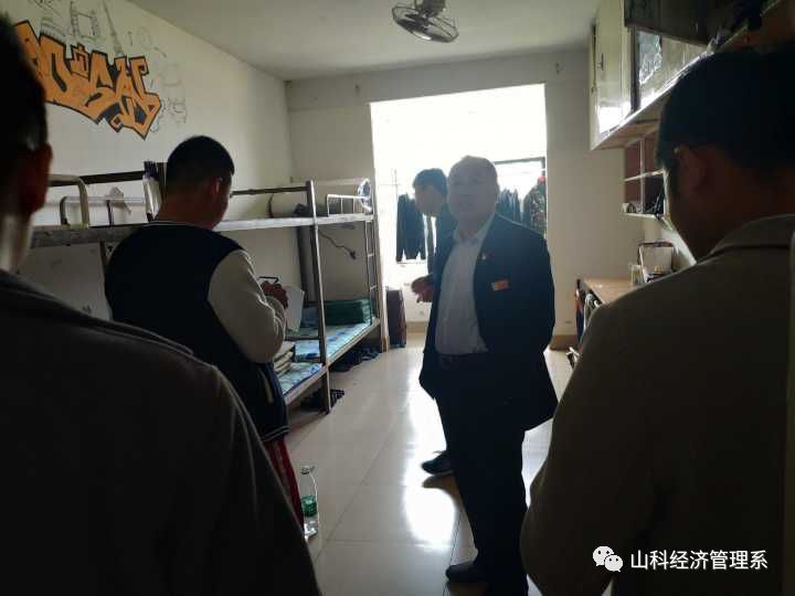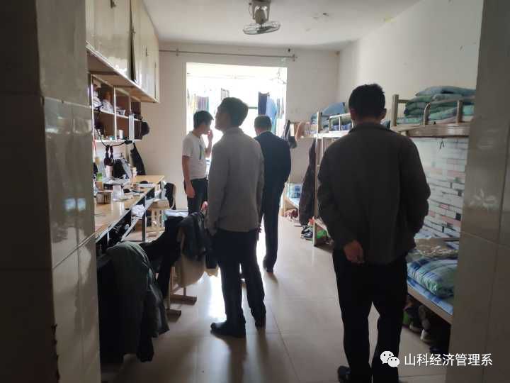 2019年4月19日,经济管理系党总支书记陈守学、学生科科长李涛及经济管理系各辅导员进宿舍开展安全常规检查活动,老师强调:在宿舍中安全问题一直是我们关注的问题,在这里希望每一位同学能够掌控自己宿舍的情况,有问题要及时向有关部门反馈,不要让问题扩大,达到不可控制的局面。