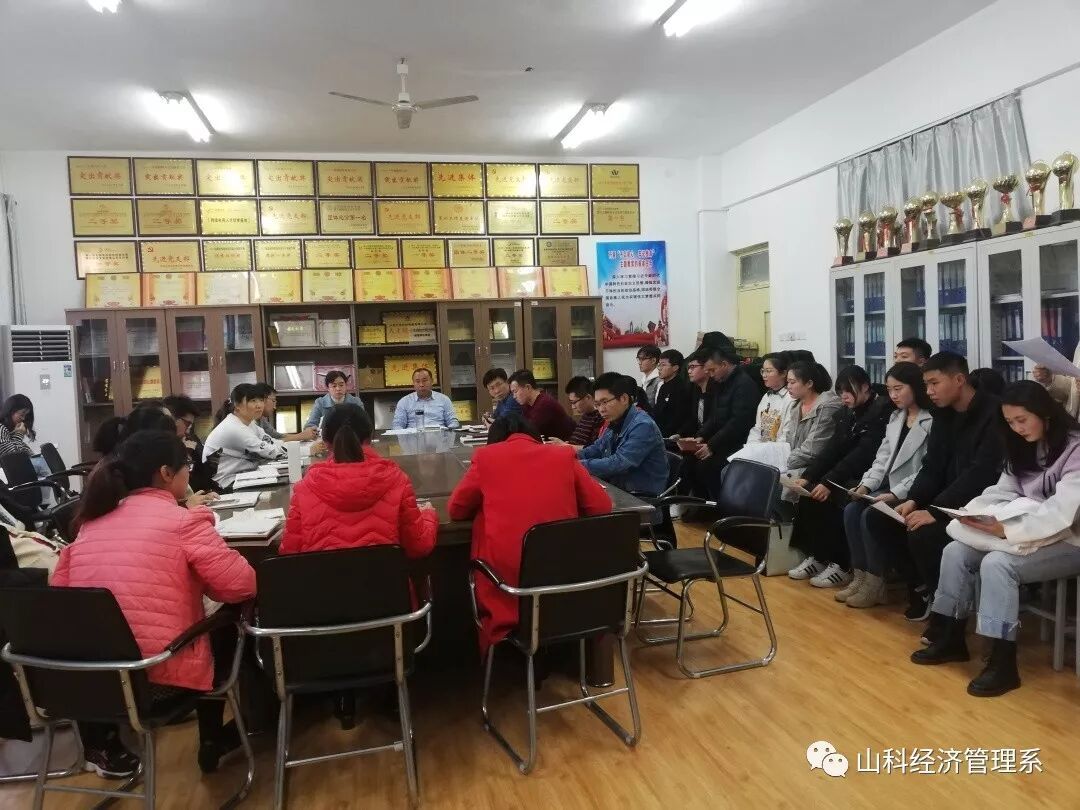 在“不忘初心、牢记使命”主题教育进入冲刺期、决胜期这一关键时刻,经济管理系党总支审时度势、精心谋划、超前布局、力争主动,把做好党员发展工作作为巩固好主题教育成果的着力点和落脚点,于2019年11月25日召开学生党支部党员发展大会。党总支书记陈守学出席会议并讲话,党总支组织委员、学生党支部书记李涛主持会议,学院组织员杨颂到会监督指导。学生党支部全体党员及41名党员发展对象参加会议。