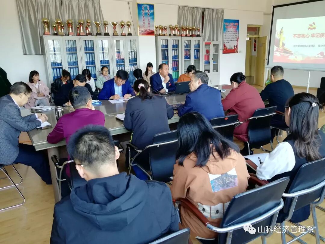 为深入开展“不忘初心 牢记使命”主题教育,持续学习贯彻落实习近平新时代中国特色社会主义思想,2019年10月30日中午,经济管理系党总支组织开展了“不忘初心 牢记使命”专题党课活动。本次党课由经济管理系党总支书记陈守学主讲,全系副职以上干部和全体党员参加。