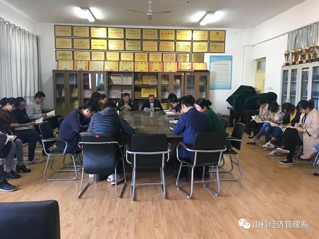 在学院各部门如火如荼开展“不忘初心、牢记使命”主题教育之际,经济管理系聚焦主题,紧跟形势,着眼发展,力求争先,于10月15日16:00在问辩楼404会议室召开主题教育读书会。读书会由党总支书记陈守学主持。经济管理系主任陈永顺、副主任姚敏及党总支全体党员参加读书会。