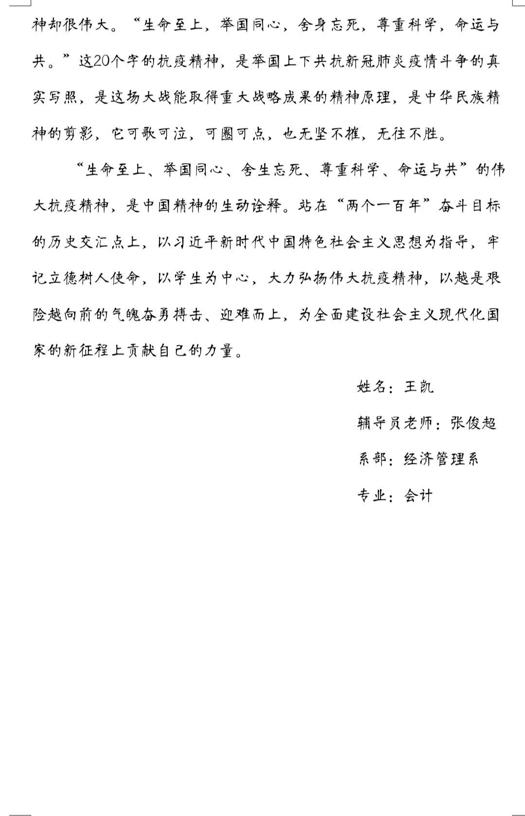 对我们学生而言,我们不曾见过如此波澜壮阔却又触目心惊的世界,但在今年的疫情中,让我们感受到了全国人民对祖国的大爱。白衣天使,农民工,无数平凡人倾情付出。愿我们所有的人,心手相牵,能够从这次战役中得到历练和成长,让人生因为这一路的风雨跋涉变得丰富而又充实。