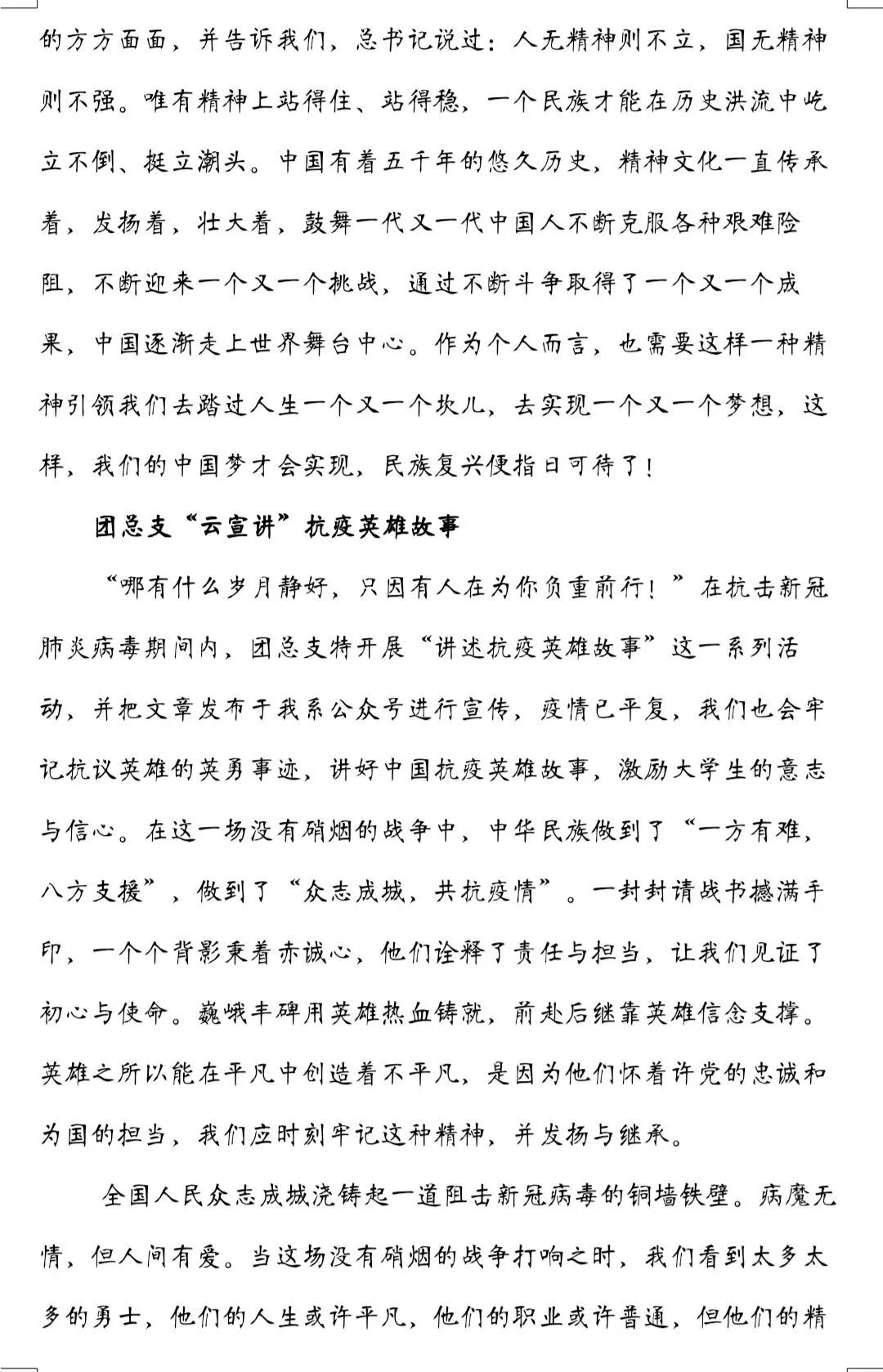 本次活动是以征文形式收集。在此次活动中,同学们都积极参加,结合自身的思想和在疫情期间的生活实际,讲述着身边的抗疫小故事,如我系的一名学生为商管一班李东洋,在疫情期间到医院主动为同学陪床,她的行为向广大同学展示了我系师生团结抗疫的时代精神,并倡导我系学生积蓄前进的力量,坚定理想信念,培育高尚品格,在矢志奋斗中谱写新时代青春之歌。