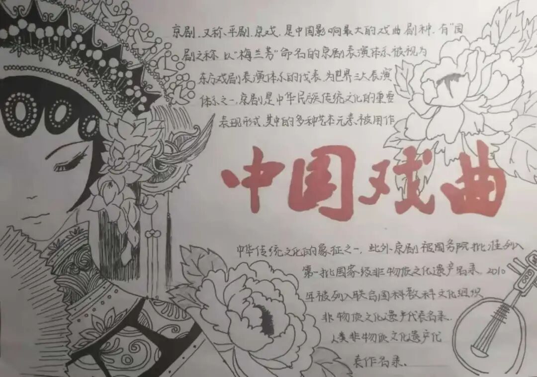 本次活动以绘画的形式开展,学生们积极踊跃参与,运用简单素描、漫画、水彩画、艺术字等形式构思作品。学生们的作品生动形象地展现了京剧、剪纸、汉服、皮影戏等,体现了学生们对中华传统文化的理解,也体现出中华传统文化的魅力。学生们纷纷表示,要为传承中华优秀传统文化奉献自己的力量。