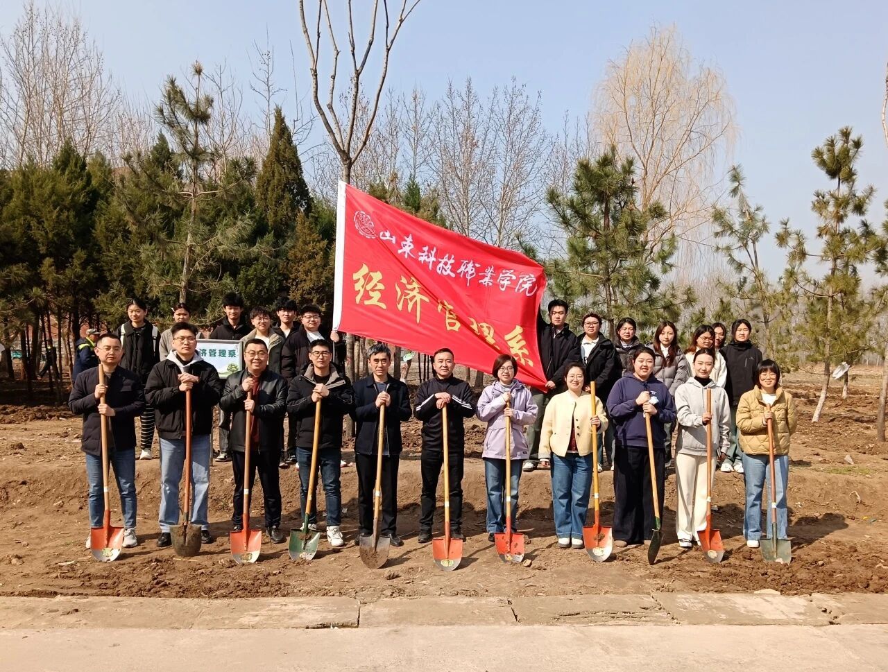 3月12日上午,经济管理系30余名师生参加了学校组织的“履行植树义务,共建美丽校园”义务植树活动,以实际行动为校园添新绿。